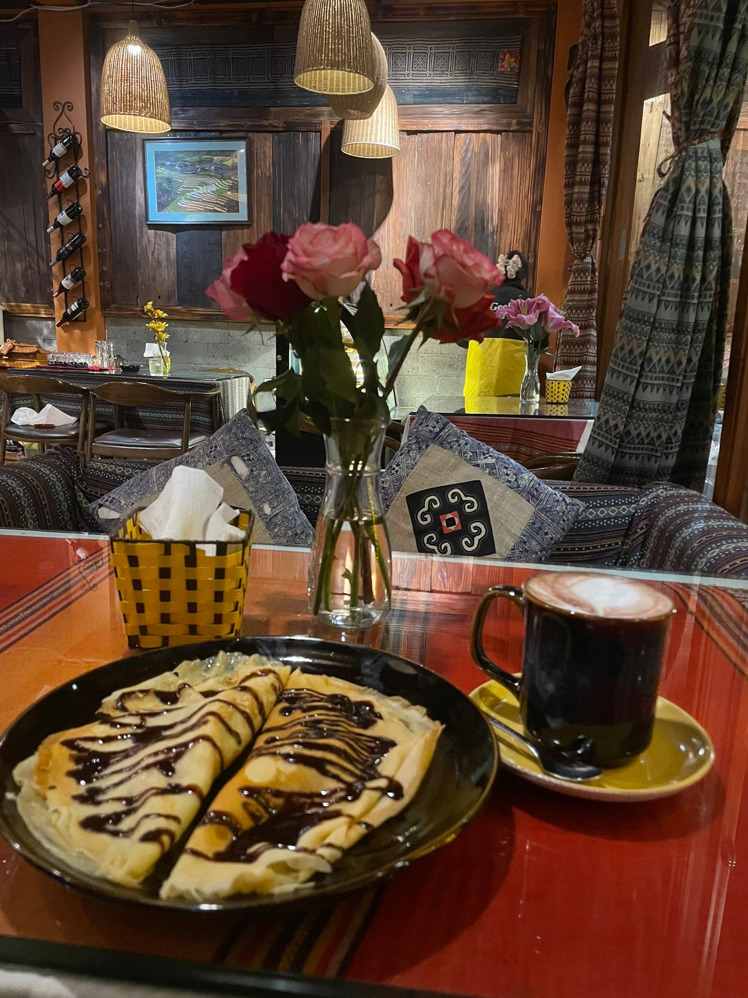 Il tardo pomeriggio era libero. Abbiamo deciso di visitare il centro di Sapa, in particolare la chiesa di Notre-Dame du Rosaire, la stazione Sun Plaza e il lago. Ci siamo poi fermate per uno spuntino dolce al caffè-ristorante Le Petit Gecko, un locale dai prezzi accessibili che propone una grande varietà di piatti, tutti deliziosi. Qui abbiamo consumato anche la cena e il pranzo della domenica. I menu erano tradotti in francese, inglese e vietnamita, il che ha reso molto piacevole la scelta dei piatti e l’ordinazione. Dopo questo buon pasto, siamo rientrate a riposarci in ostello.
