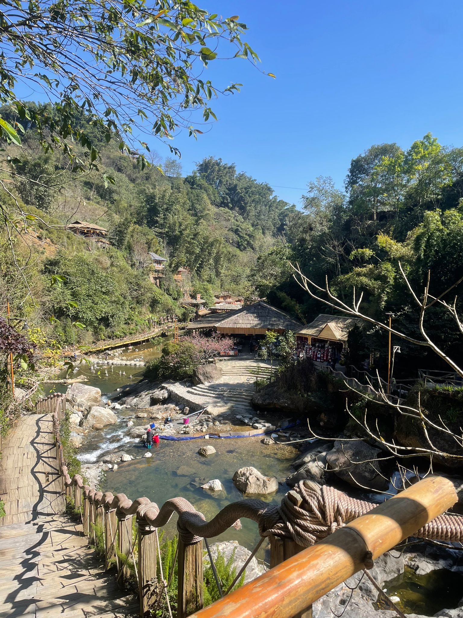 All’arrivo nel grazioso villaggio di Cat Cat (ingresso a pagamento, circa 150.000 VND), abbiamo vissuto un’esperienza unica e autentica. Il villaggio è organizzato intorno a un ruscello e offre uno scenario spettacolare, soprattutto grazie alle numerose cascate. Passeggiando per le strette viuzze, tra abitazioni tradizionali, botteghe e splendidi punti panoramici, abbiamo pienamente apprezzato l’atmosfera del luogo. Fin dall’ingresso del villaggio, numerosi negozi propongono abiti tradizionali per uomini, donne e bambini, con la possibilità di farsi anche truccare per scattare splendide foto in questo contesto eccezionale.